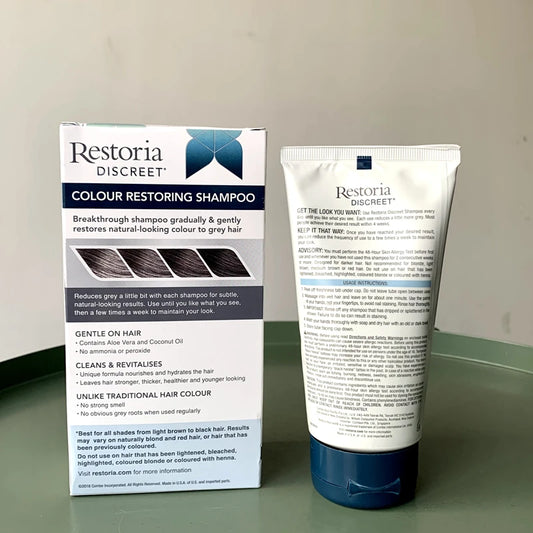 New Original Restoria Discreet Colour Restoring Shampoo Care 147ml Reduce Grey Hair for Men and Women